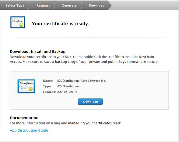 After your certificate is generated it will bring you to the download page. Click Download to save it on your computer.