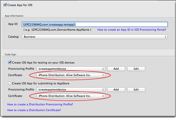 Go back to iCreateApp, click "Certificate" to select the certificate with the name beginning iPhone Distribution.