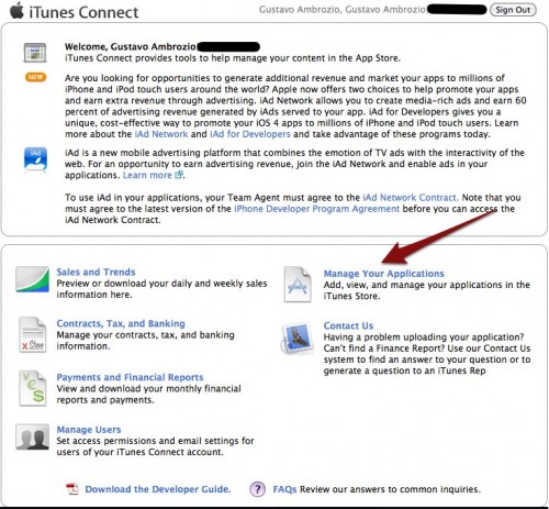 Log into iTunes Connect (https://itunesconnect.apple.com) with your Apple ID. Click "Manage Your Applications".