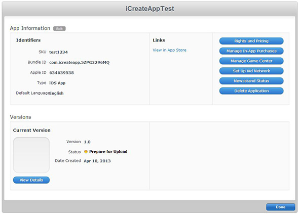 You are now at the final screen. All you have to do now is hit "Done" and your app will be published.