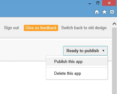 Once you have everything filled out and ready to go. The drop down menu located in top right hand corner of the page will change from "Draft" to "Ready to Publish". Select the drop down menu and select "Publish this app".