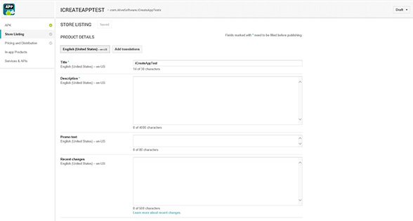 After you finish uploading the APK file, you can select "Store Listing" on the left hand side. This is where you fill out all the information about your App that other people can see when they browse the Play Store.