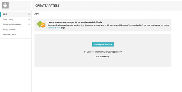 You will be brought to a page like the one above if you need a license key follow the on screen instructions. Click "Upload your first APK". Either drag your APK into the box or hit browse and navigate to where your APK file is.