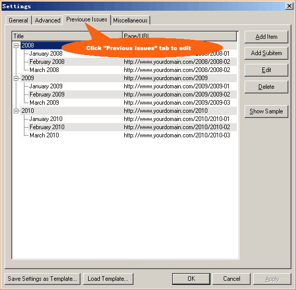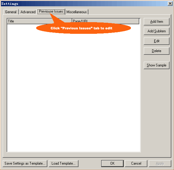 Issues" tab in the Setting dialog, you will see the blank Previous