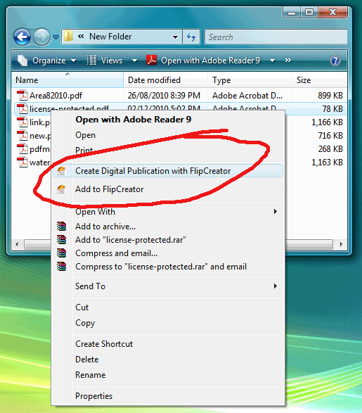 Right click on PDF files to create